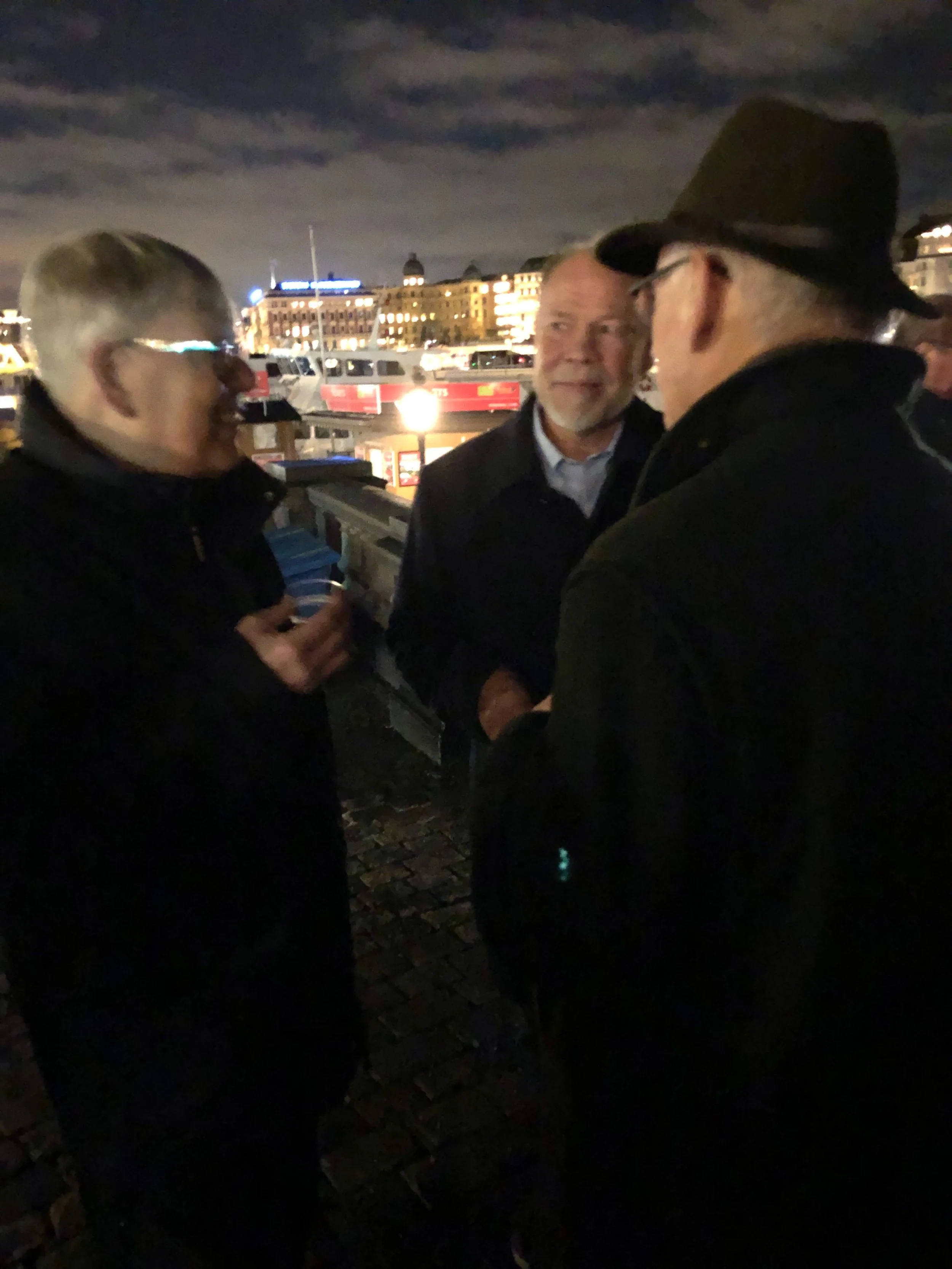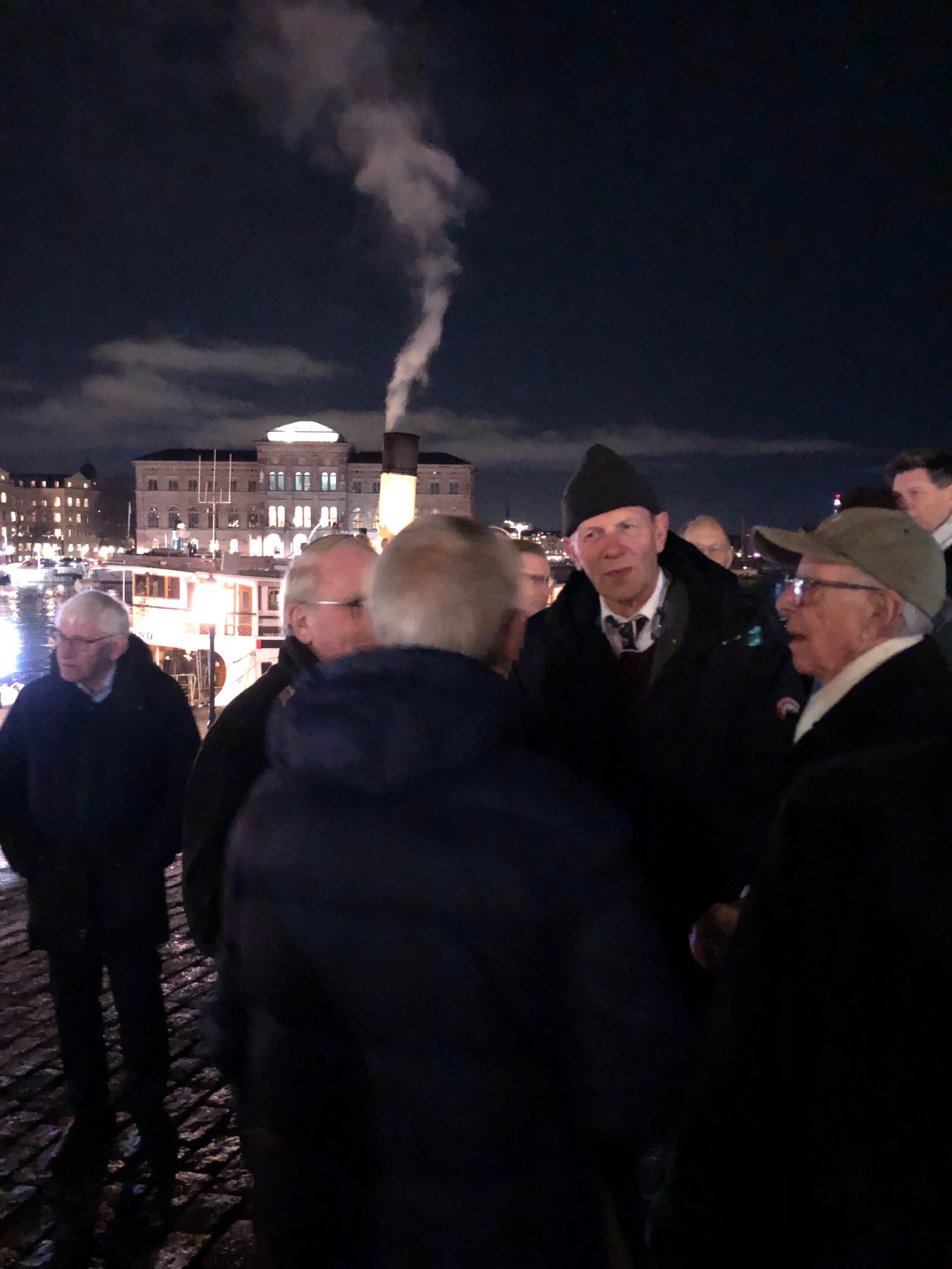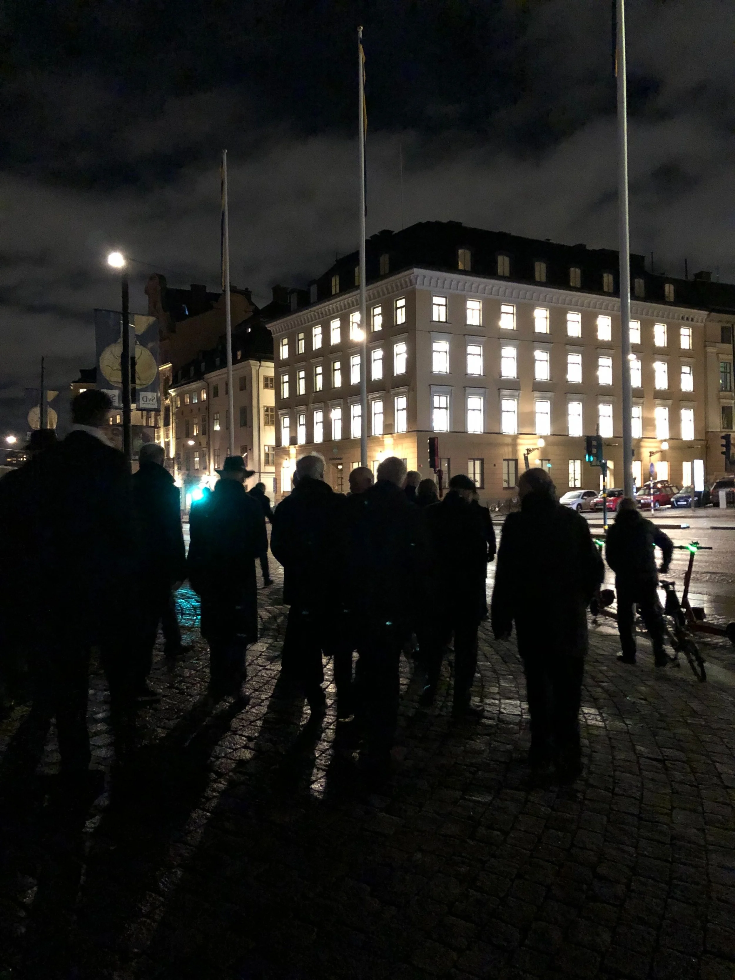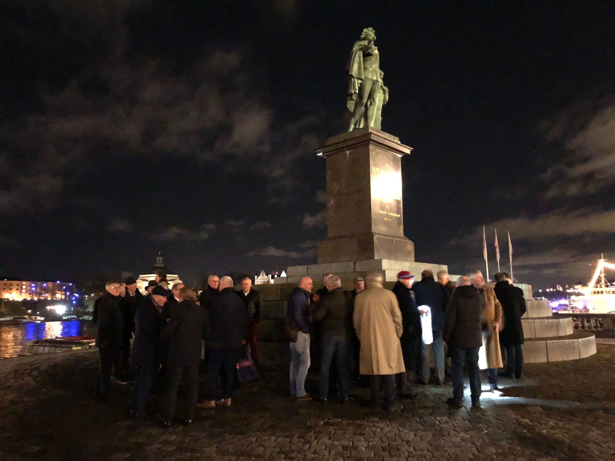 Klockan 18:30 samlades vi vid Gustaf III:s staty på Skeppsbron för att, efter traditionsenlig välkomstceremoni, gemensamt skrida mot Sjöfartshuset.