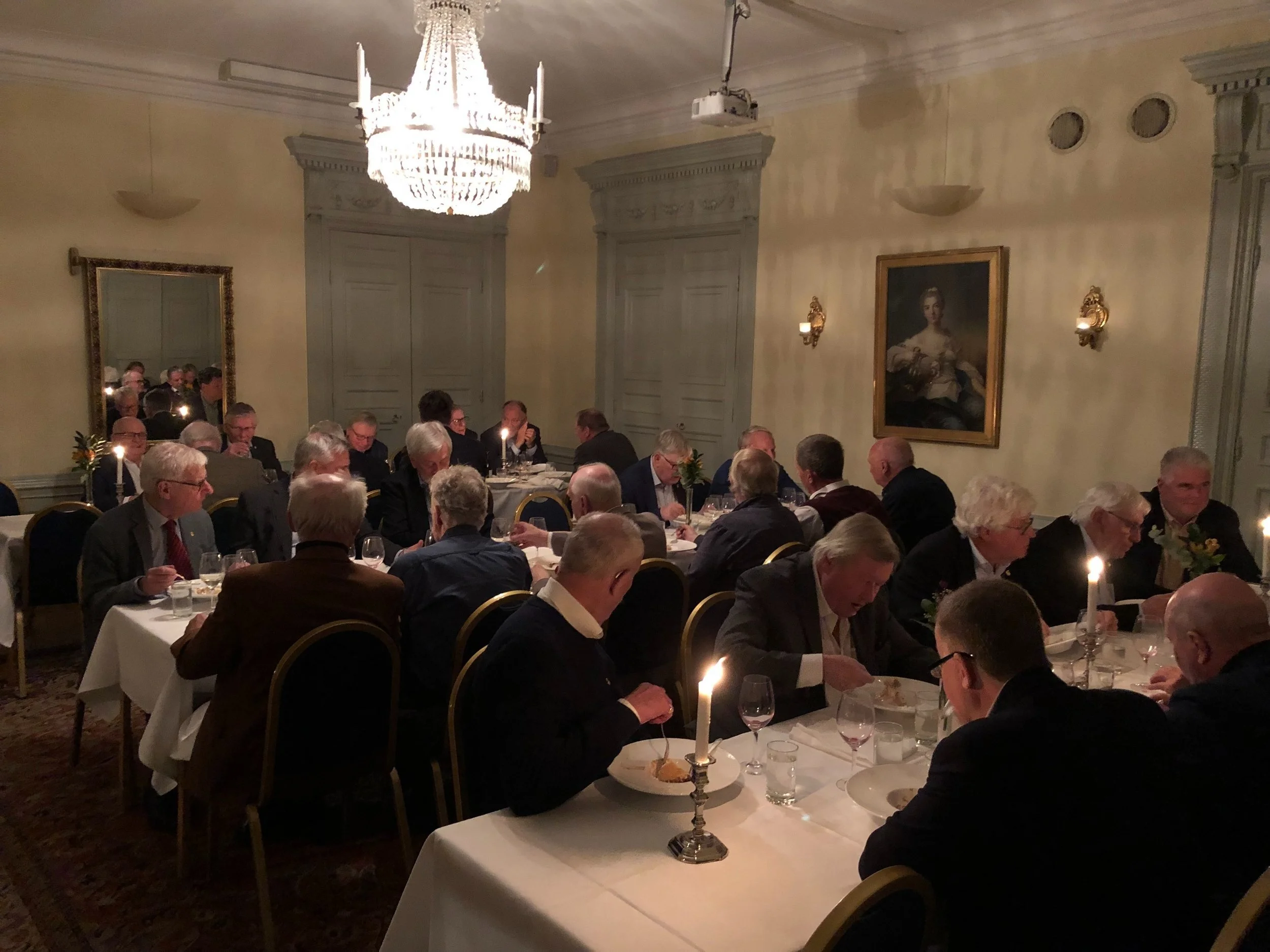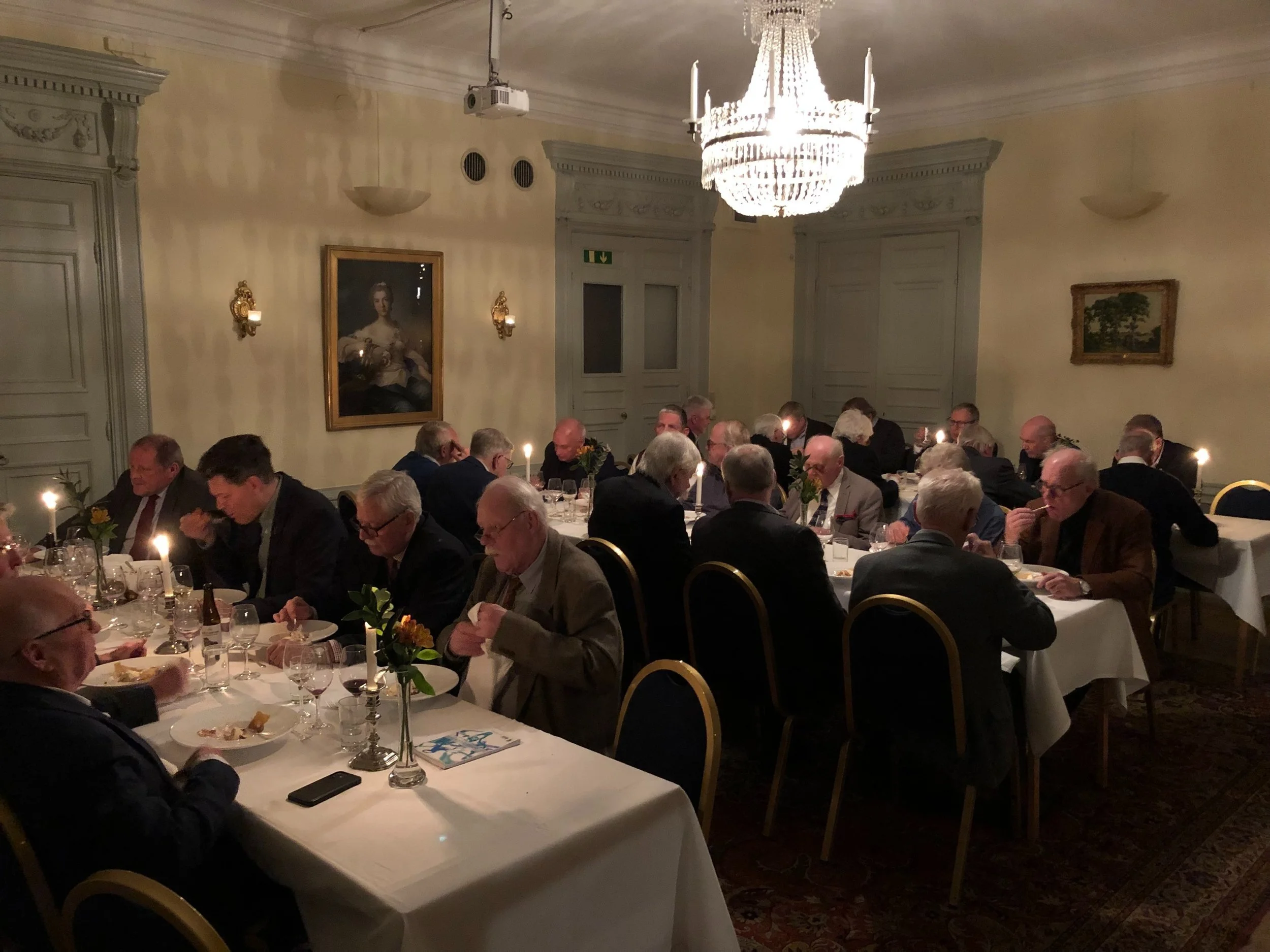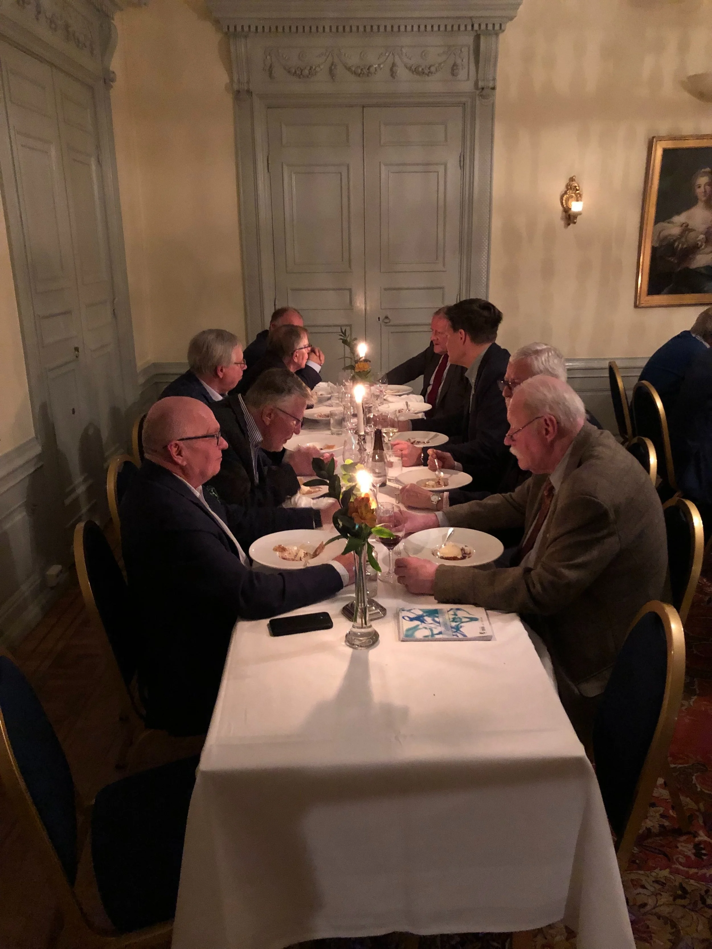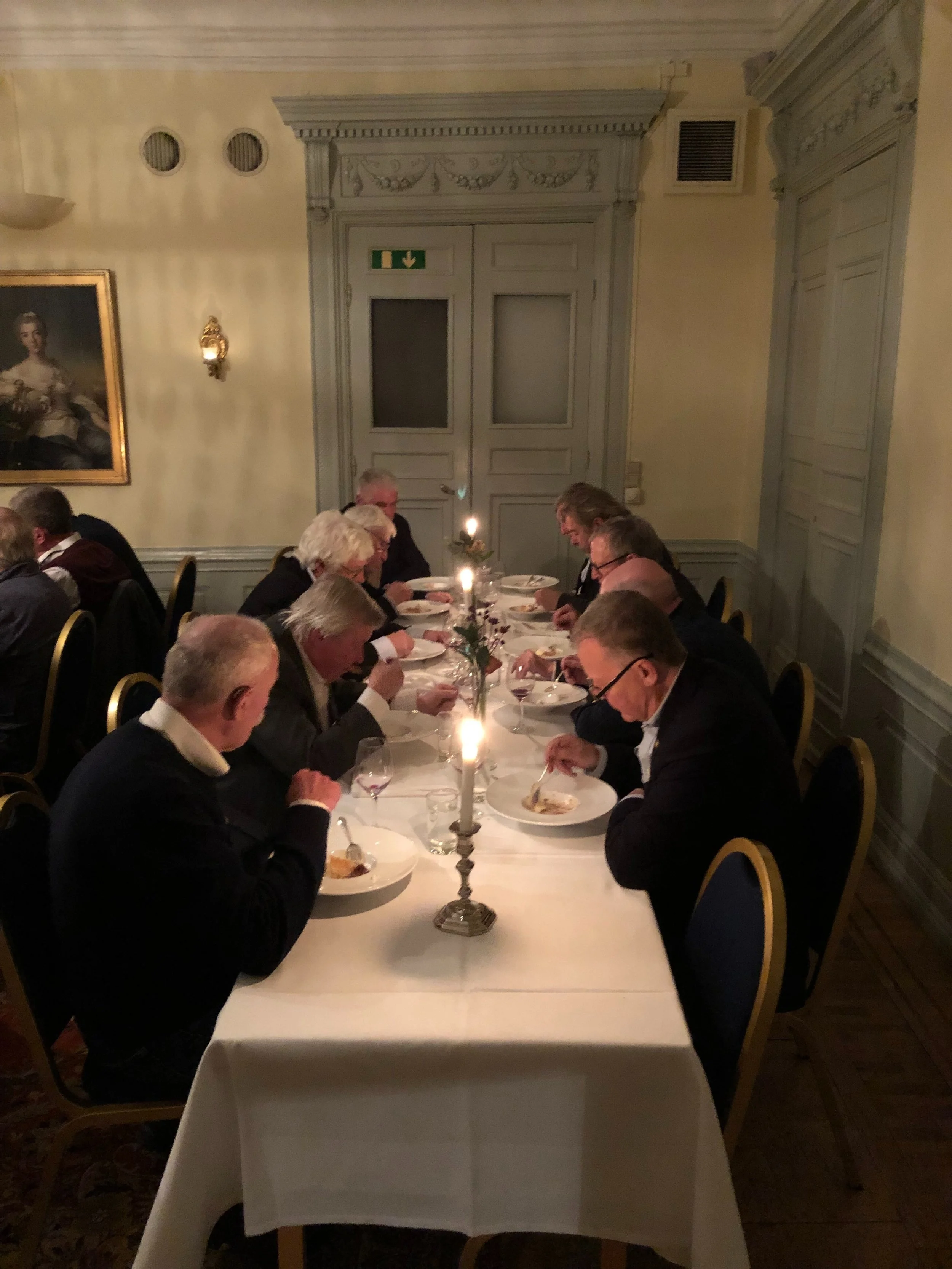Äntligen förverkligades samvaron som fäderna till vårt gille tänkte sig när de slog fast att gillet skulle verka för gillbrödernas gemensamma trevnad. Sjöfartshuset på Skeppsbron blev vårt värdshus onsdagen den 24:e november och Bellman vår värd. Bellmankännaren och stormästaren i Par Bricole, Henrik Mickos, berättade och underhöll med Bellman som tema. Vi lät då, mätta och belåtna, servetterna falla till golvet, höll glasen på armlängds avstånd och kände oss inte bara goda utan kanske även ädla.