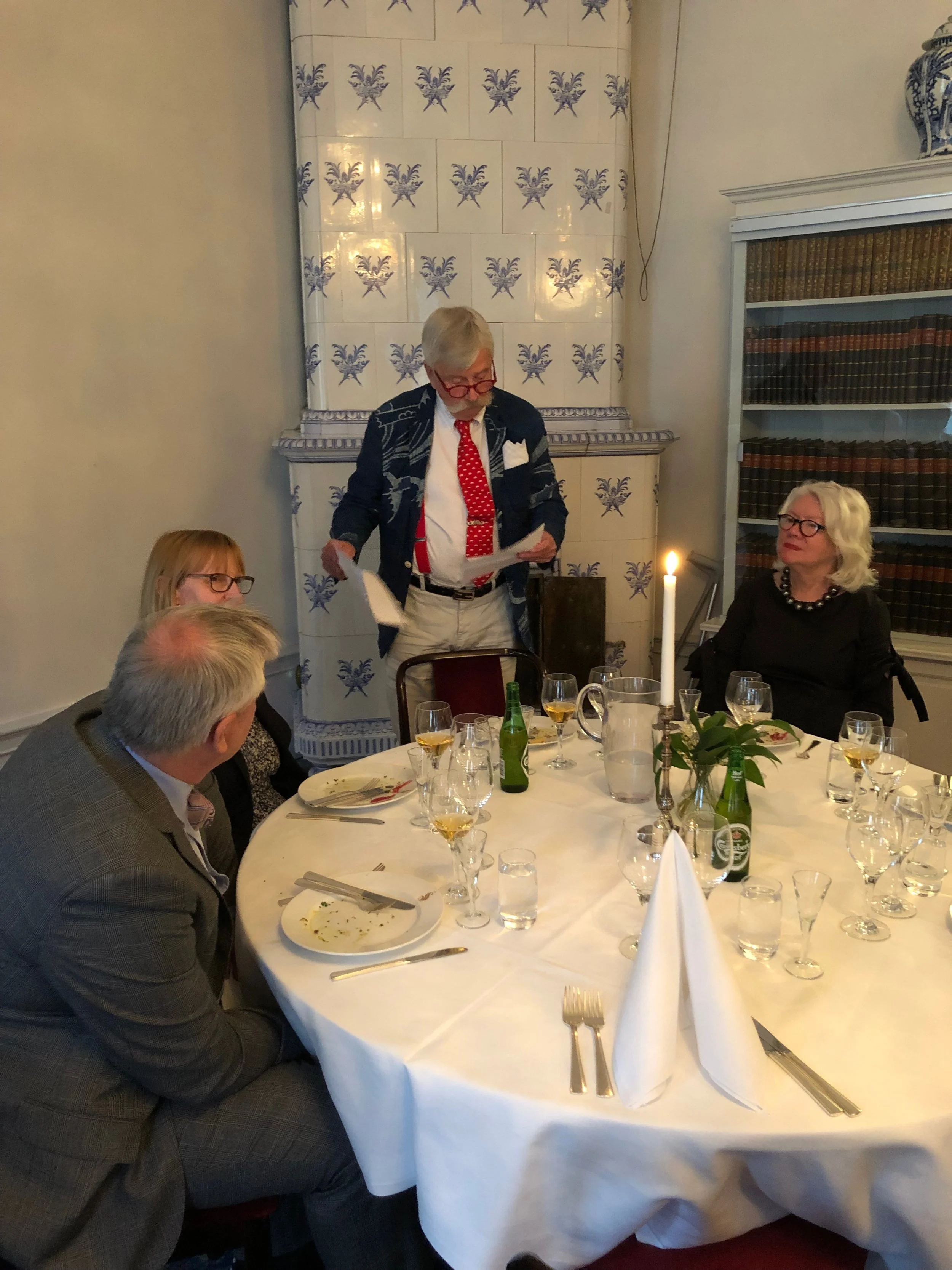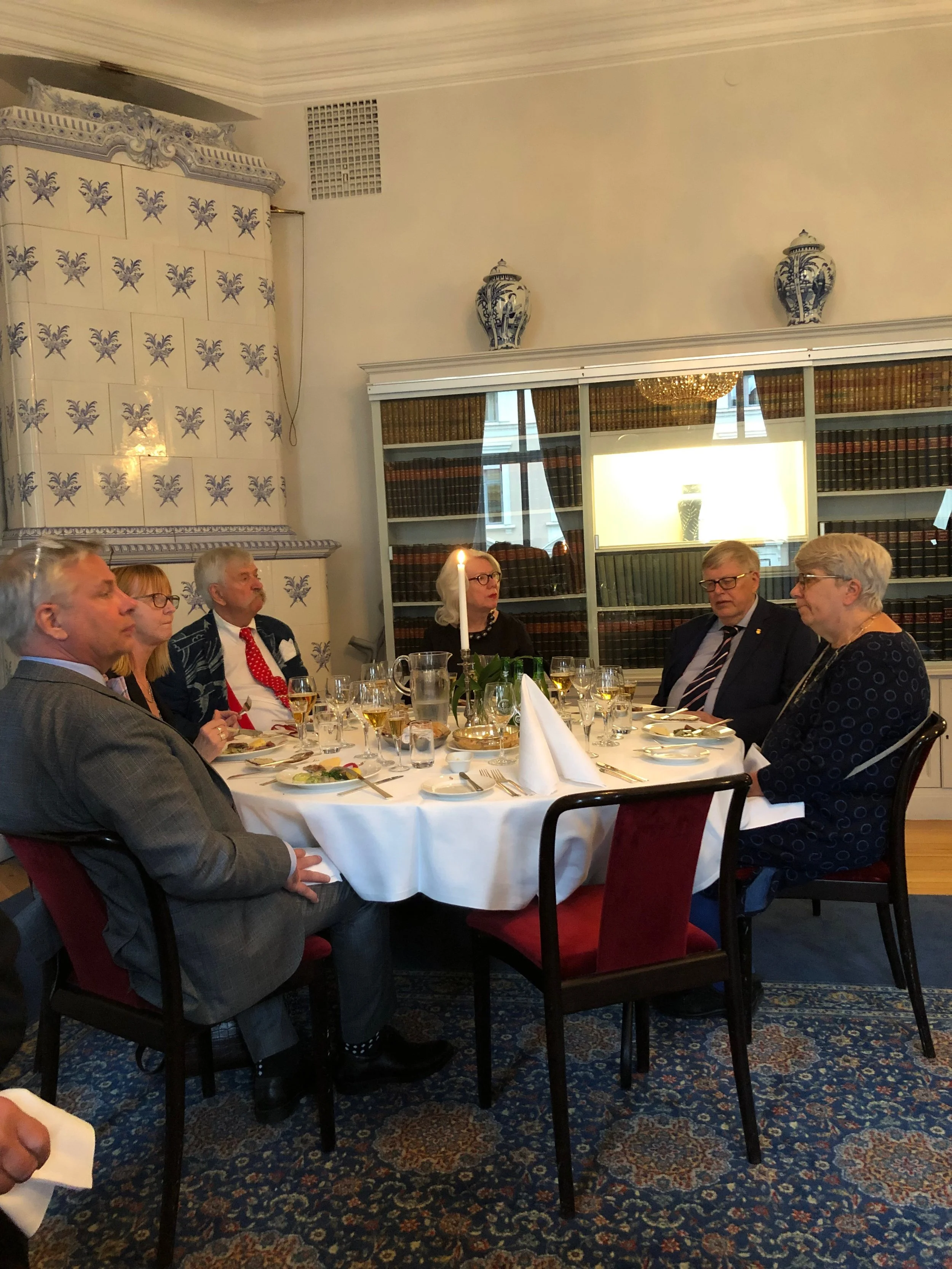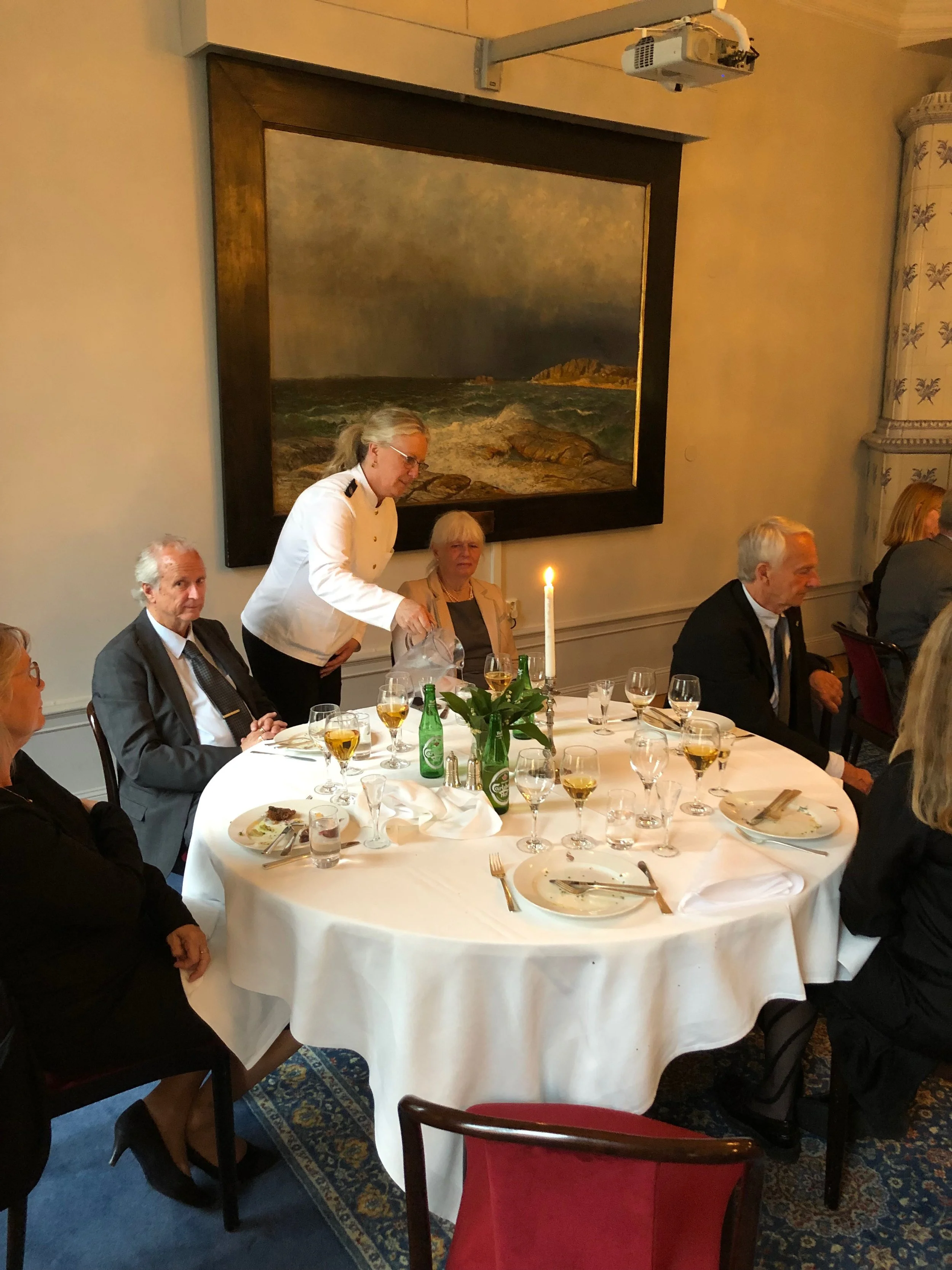 Efter visningen begav vi oss mot sällskapet, Arsenalsgatan 7, där gillemåltid serverades i den s.k. Blå matsalen, 2tr.
